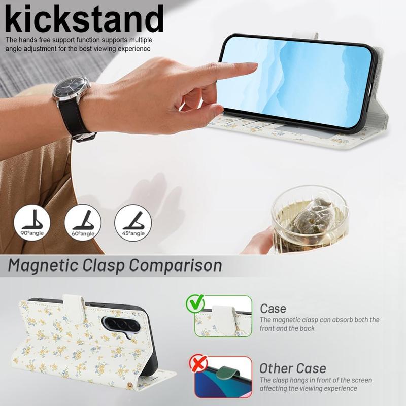 Rafraîchissez votre Samsung Galaxy A57 avec un portefeuille à rabat fin qui allie protection sécurisée et praticité au quotidien. La face avant surpiquée en losange et le minuscule motif floral ajoutent un style élégant, tandis qu'une coque TPU souple amortit les chutes et qu'un revêtement en polyuréthane protège contre les rayures. Plusieurs fentes pour cartes, une pochette pour argent liquide et une dragonne incluse font de cet étui une solution de transport unique pour les trajets quotidiens, les voyages ou les sorties nocturnes.