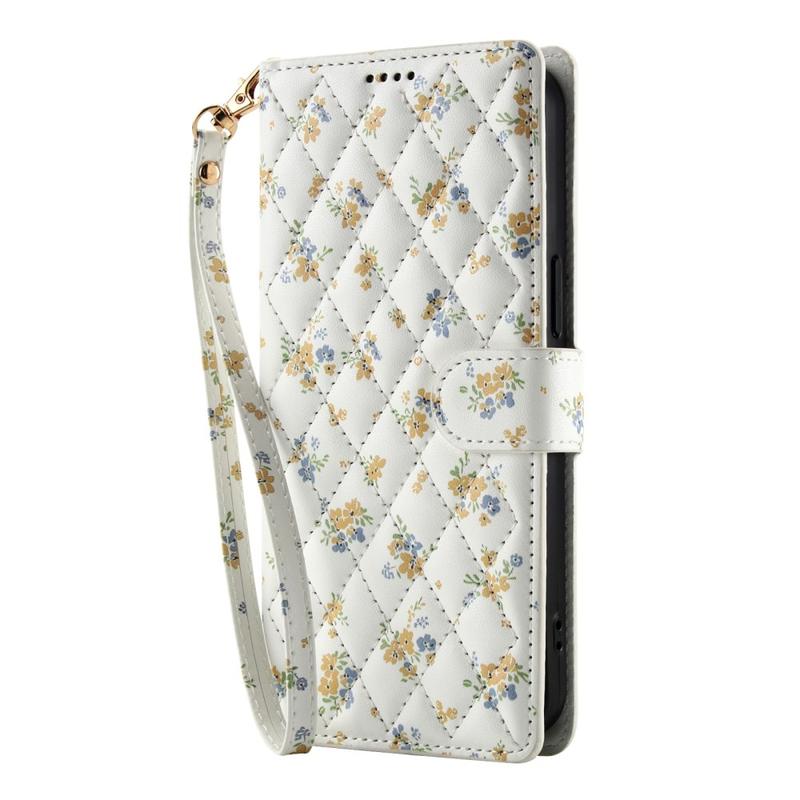 • Étui portefeuille à motif floral rhombique pour Samsung Galaxy A57 - avec dragonne et fentes pour cartes