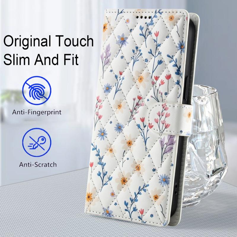 Rafraîchissez votre Samsung Galaxy S26+ avec un portefeuille à rabat fin qui allie protection sécurisée et praticité au quotidien. La face avant surpiquée en losange et le minuscule motif floral ajoutent un style élégant, tandis qu'une coque TPU souple amortit les chutes et qu'un revêtement en polyuréthane protège contre les rayures. Plusieurs fentes pour cartes, une pochette pour argent liquide et une dragonne incluse font de cet étui une solution de transport unique pour les trajets quotidiens, les voyages ou les sorties nocturnes.