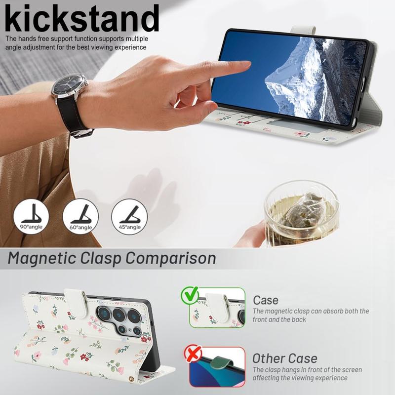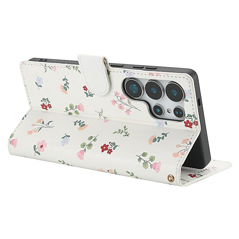 Rafraîchissez votre Samsung Galaxy S26 Ultra avec un portefeuille à rabat fin qui allie protection sécurisée et praticité au quotidien. La face avant surpiquée en losange et le minuscule motif floral ajoutent un style élégant, tandis qu'une coque TPU souple amortit les chutes et qu'un revêtement en polyuréthane protège contre les rayures. Plusieurs fentes pour cartes, une pochette pour argent liquide et une dragonne incluse font de cet étui une solution de transport unique pour les trajets quotidiens, les voyages ou les sorties nocturnes.