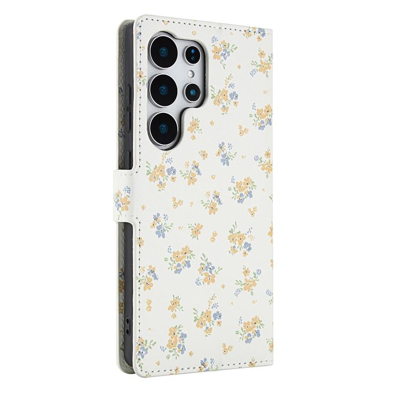 Étui portefeuille à motif floral rhombique pour Samsung Galaxy S26 Ultra - avec dragonne et fentes pour cartes
