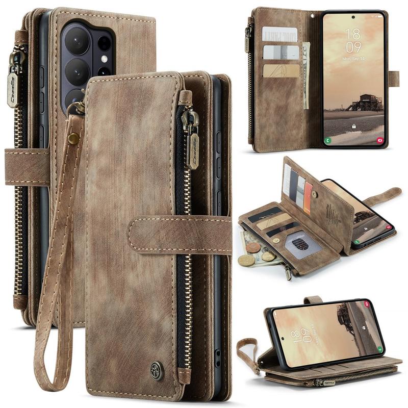 Étui Portefeuille Samsung Galaxy S26 Ultra Multifonctionnel Caseme C30 - Marron