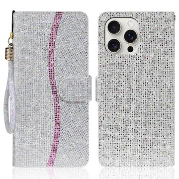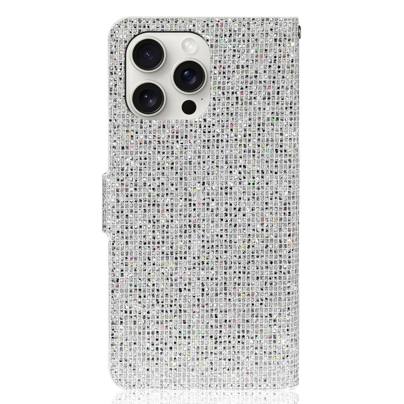 Étui portefeuille stylisé à paillettes pour iPhone 16 Pro Max - Argenté
