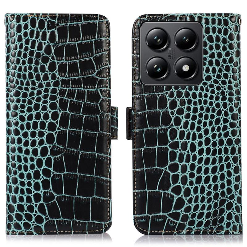Etui Portefeuille en Cuir avec RFID Série Crocodile pour Xiaomi 14T