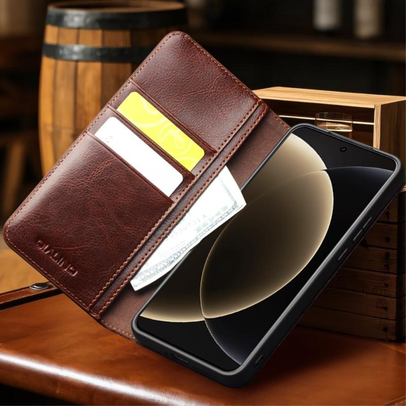 Protègez votre Xiaomi 15 Ultra avec l'étui portefeuille classique de Qialino. Grâce à cet étui élégant, vous aurez toujours toutes vos cartes et l'argent à portée de main.