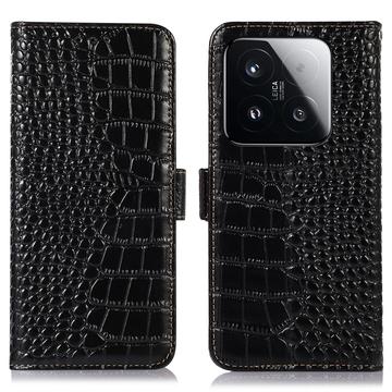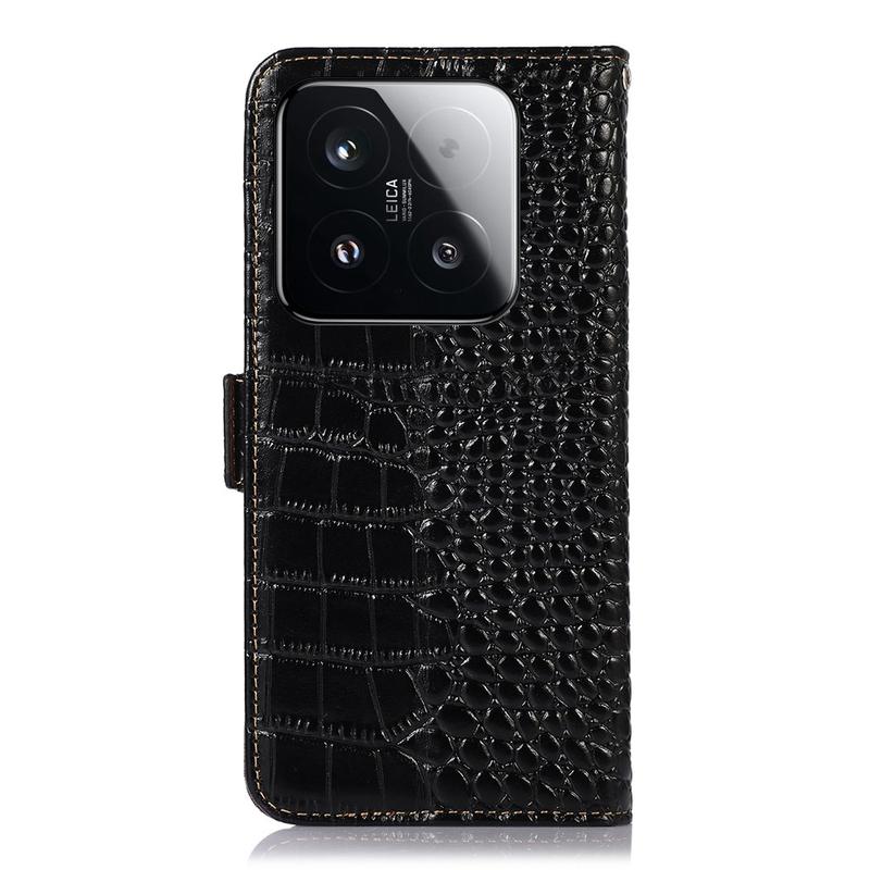 Etui Portefeuille en Cuir avec RFID Série Crocodile pour Xiaomi 15T