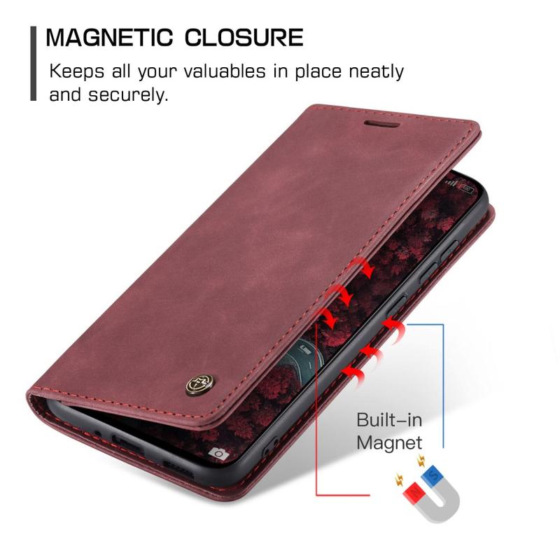 - Les aimants intégrés maintiennent l'étui portefeuille de la série Caseme 013 fermé