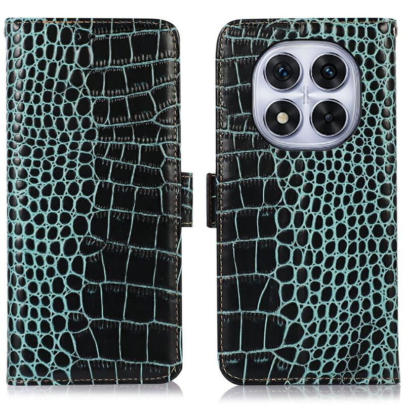 Étui Portefeuille Xiaomi Redmi Note 14 Pro 5G/Poco X7 en Cuir avec RFID - Série Crocodile - Vert