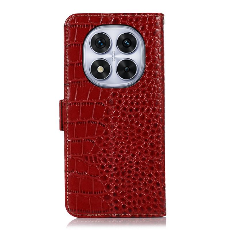 Étui Portefeuille Xiaomi Redmi Note 14 Pro 5G/Poco X7 en Cuir avec RFID - Série Crocodile - Rouge