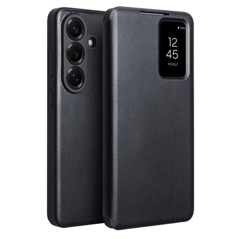 Étui à Rabat Samsung Galaxy S26 en Cuir Qialino Smart View - Noir