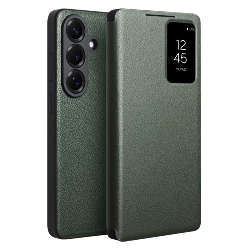 Étui à Rabat Samsung Galaxy S26 en Cuir Qialino Smart View - Vert