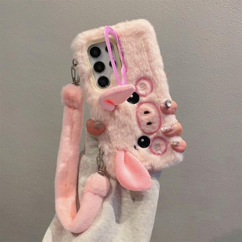 • Etui en peluche pour porcelet avec béquille et dragonne pour Samsung Galaxy S24 Ultra