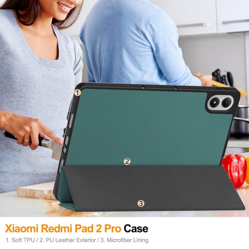 Étui Smart Folio Xiaomi Redmi Pad 2 Pro/Poco Pad M1 Tri-Fold Series - Vert noirâtre
