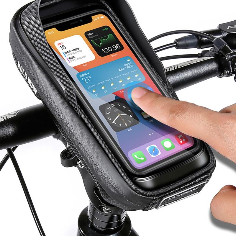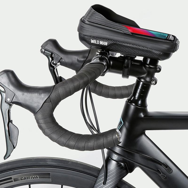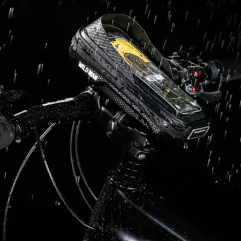Sac de rangement pour potence de vélo Wild Man E16 - Pochette rigide en EVA pour vélo avec écran tactile en TPU, imperméable, logo réfléchissant