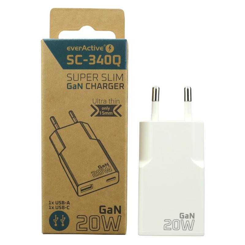 everActive SC-340Q GaN Chargeur mural ultra-mince 20W avec ports USB QC3.0 et USB-C PD