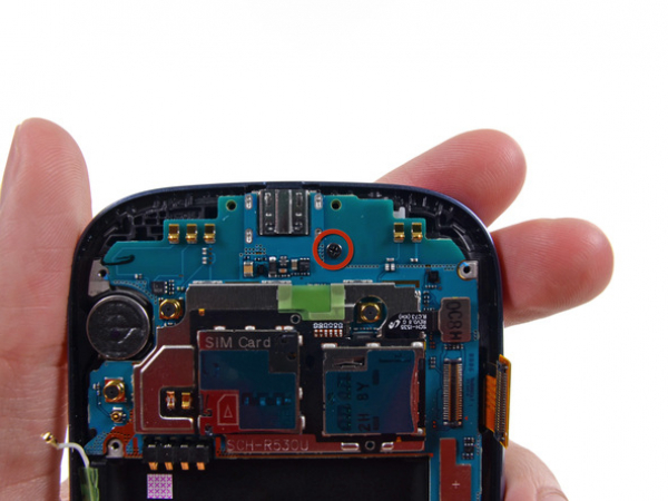 Ne pas essayer de retirer l'appareil photo frontal pour l'instant. Son câble est toujours connecté sous l'ensemble de la carte mère au capteur de lumière ambiante.