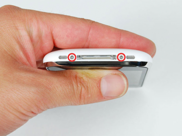 Une vis 2,9 mm Phillips # 00 au dessous de l'autocollant «Do not remove».