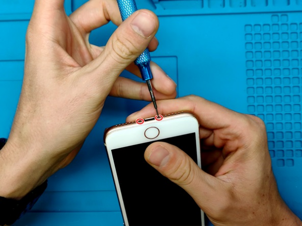 De to 3.5mm pentalobe-skruer der sidder tæt på Lightning-indgangen i bunden af telefon skal fjernes.