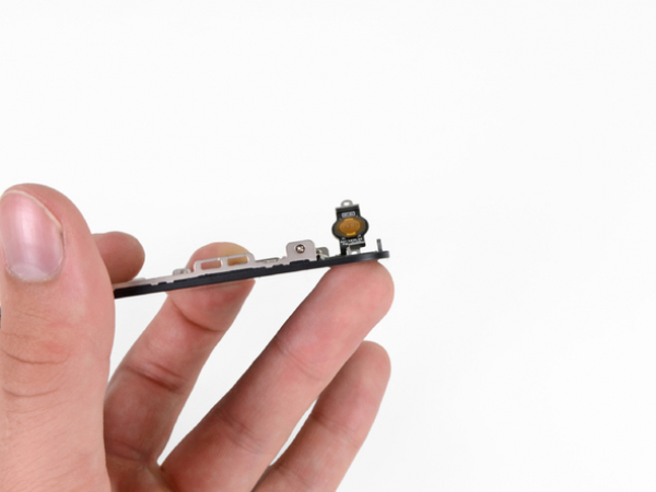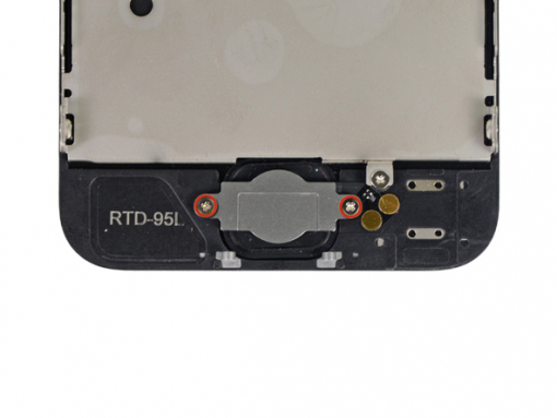 Fjern de to 1,3 mm Phillips-skruer, som fastgør hjemknappens spænde til skærmenheden.