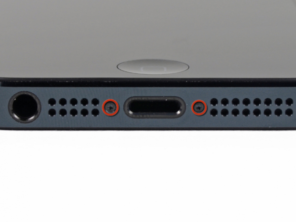 Fjern de to 3,6 mm Pentalobe-skruer ved siden af Lightning-kontakten.