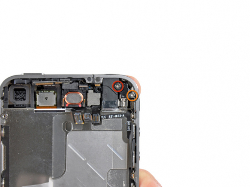 Retirez les trois rondelles à grosse tête Phillips 1.5 mm sur le côté du bouton de volume de l'iPhone.