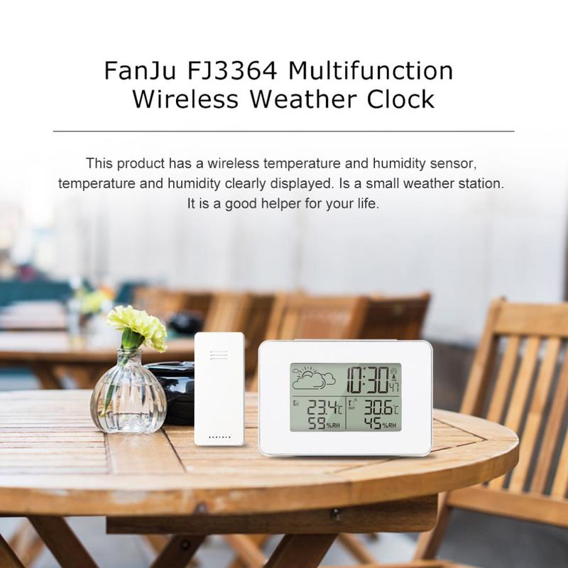 • FJ3364 Station météo numérique avec réveil, capteur sans fil, hygromètre et thermomètre avec écran LCD et calendrier
