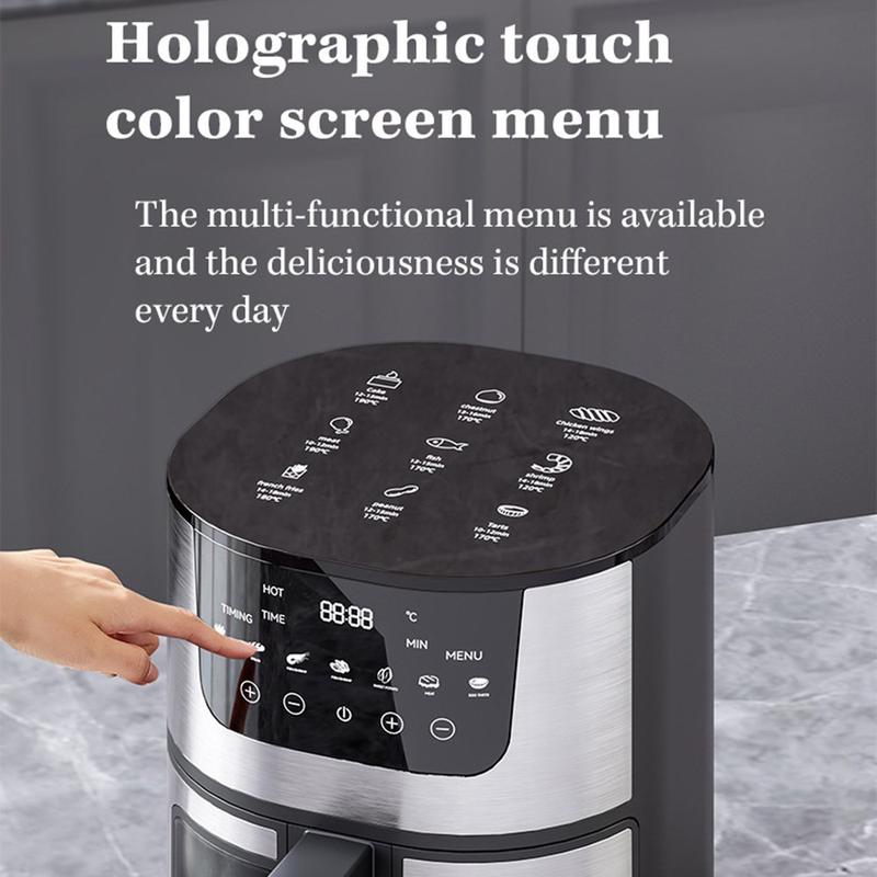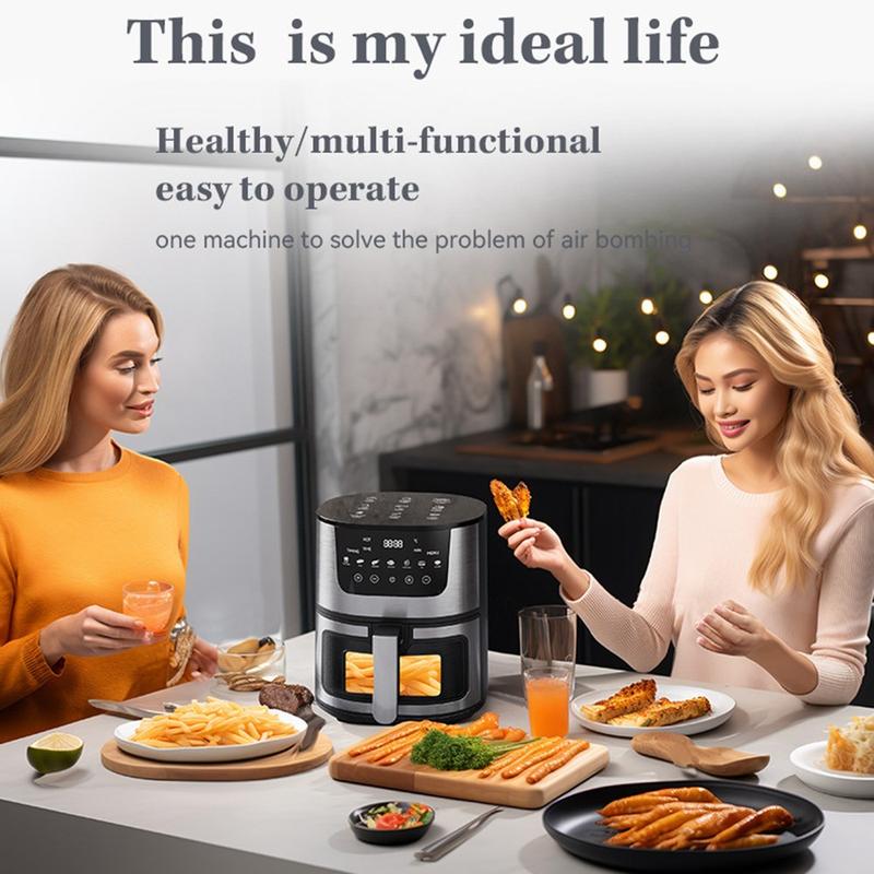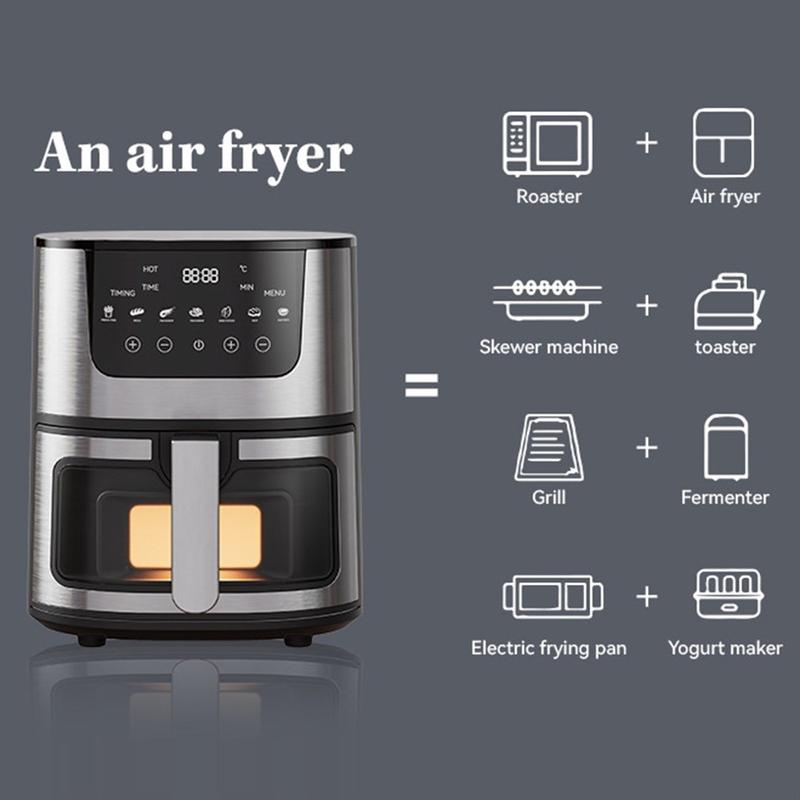Friteuse à air multifonction en acier inoxydable de grande capacité avec fenêtre de visualisation - 1500W, 7L