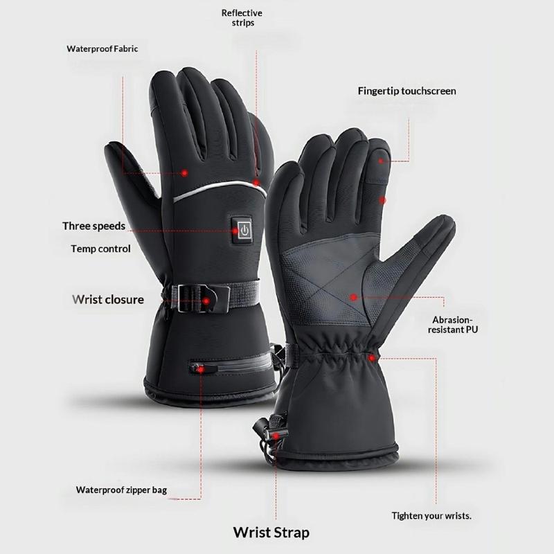 Gants chauffants électriques avec 2 batteries de 5000mAh, compatibles avec les écrans tactiles, étanches et dotés de 3 niveaux de chaleur, pour une utilisation en extérieur en hiver