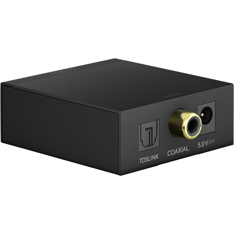 - Convertit l'audio TOSLINK ou S/PDIF coaxial en audio analogique gauche/droite RCA ou 3,5 mm stéréo - aucun boîtier supplémentaire n'est nécessaire.