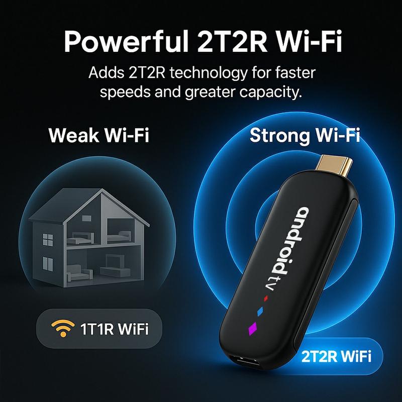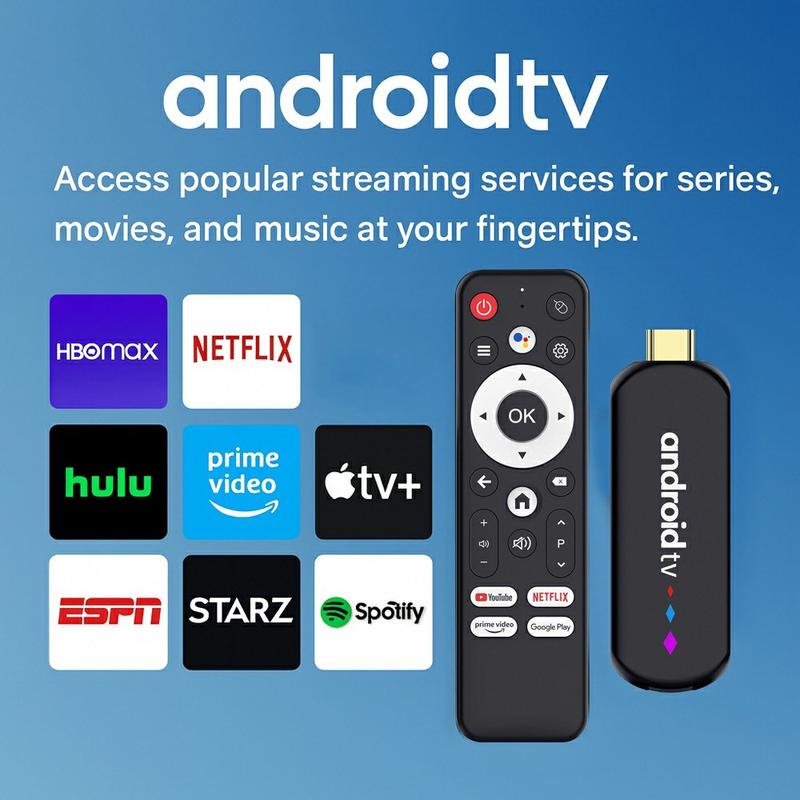 Équipée du système avancé Android 14, cette clé TV offre une interface plus intelligente, une stabilité améliorée et une réactivité plus rapide des applications. Profitez d'une navigation facile, d'un multitâche plus fluide et d'un accès à des milliers d'applications directement depuis le Google Play Store.