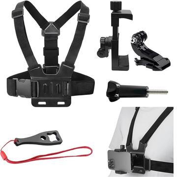 Support pour caméra d'action à fixer sur la poitrine - Harnais réglable avec clip rotatif pour téléphone, base en J et clé
