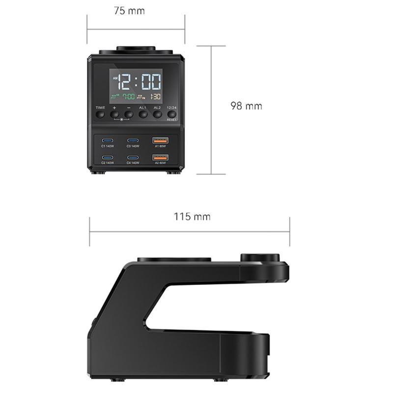 - Conception multifonctionnelle 6 en 1 - Combine un réveil, un chargeur sans fil et une station d'alimentation multiport.