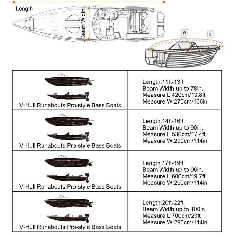 - Taille / ajustement : Pour les bateaux de 14 à 16 pieds