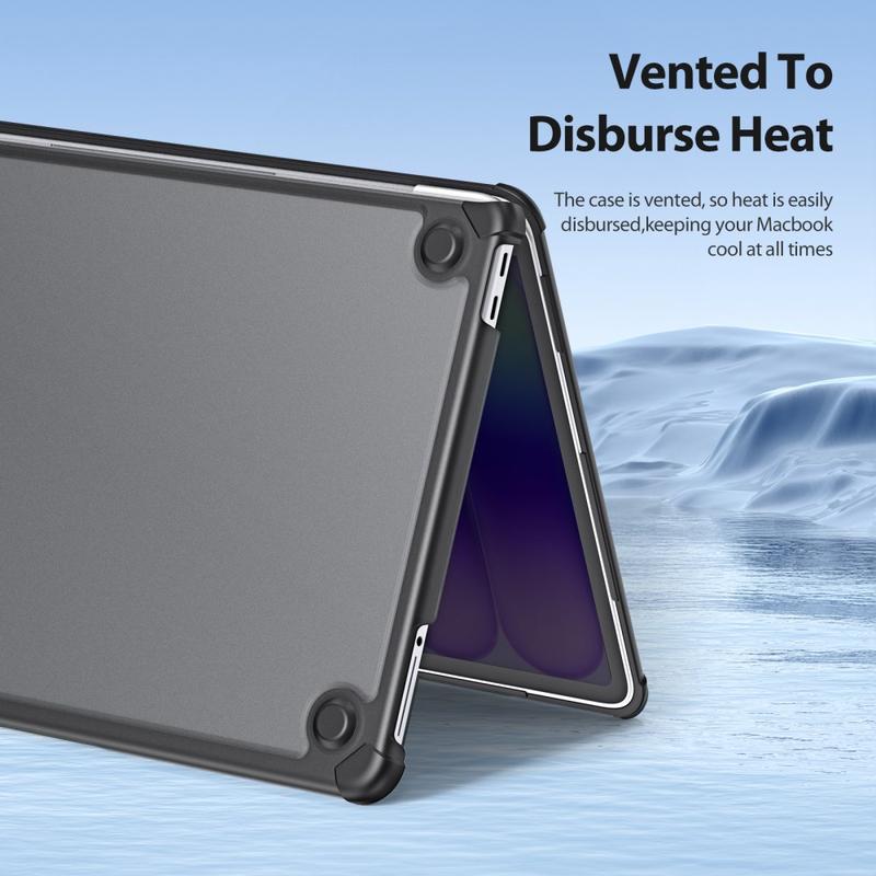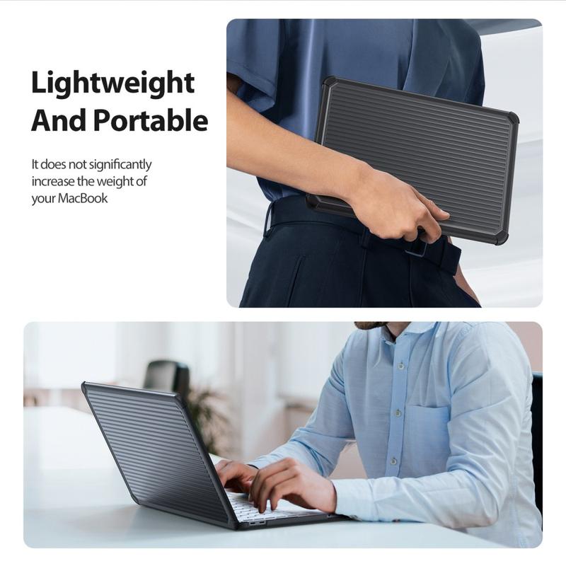 Sa conception moulée avec précision garantit un ajustement parfait grâce à des découpes précises et une ouverture et une fermeture fluides. Des patins antidérapants surélevés sur la face inférieure améliorent la stabilité et favorisent la circulation de l'air pour une meilleure dissipation de la chaleur, tandis que le système de micro-clips maintient la coque solidement en place et permet de l'installer ou de la retirer facilement en cas de besoin.