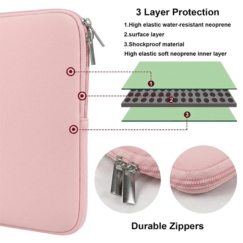 La couche intérieure est dotée d'un rembourrage en mousse de 5 à 6 mm qui aide à amortir les chocs et à protéger votre ordinateur portable contre les rayures et les impacts mineurs. Ce rembourrage supplémentaire offre également une protection supplémentaire en cas de chute accidentelle ou de chocs pendant le transport. Une housse rembourrée comme celle-ci est un choix pratique pour les utilisateurs qui recherchent une protection légère sans avoir à transporter un sac d'ordinateur portable encombrant.