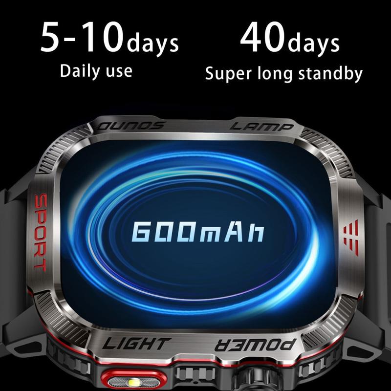 HT29 montre connectée avec écran HD 2,01", boussole, détection d'altitude, lampe de poche et surveillance de la santé