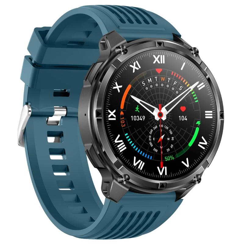 HT33 Montre intelligente Bluetooth pour la surveillance de la santé avec langue danoise - Écran IPS 1,7" - Bleu