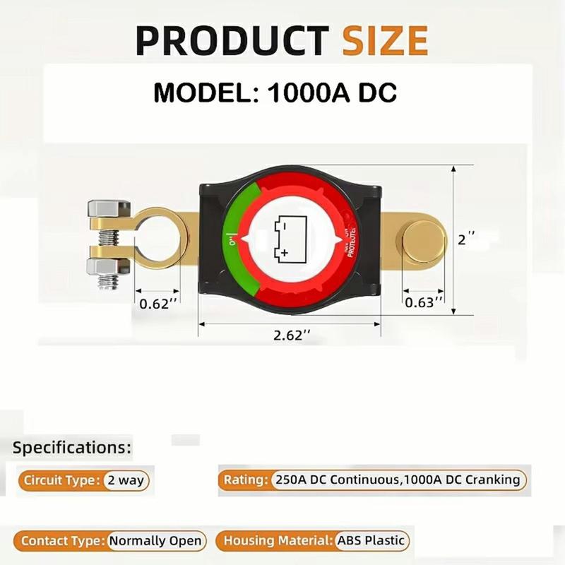 Ce coupe-batterie principal est une mise à niveau intelligente pour tous ceux qui recherchent un moyen simple, efficace et fiable de gérer l'alimentation de la batterie. Il aide à protéger la batterie lorsque le véhicule est stationné pendant de longues périodes, favorise un entretien plus sûr et peut également servir de point de coupure d'urgence rapide. Grâce à sa capacité de courant élevée et à son fonctionnement simple, il convient aussi bien aux véhicules de tous les jours qu'aux applications plus exigeantes.