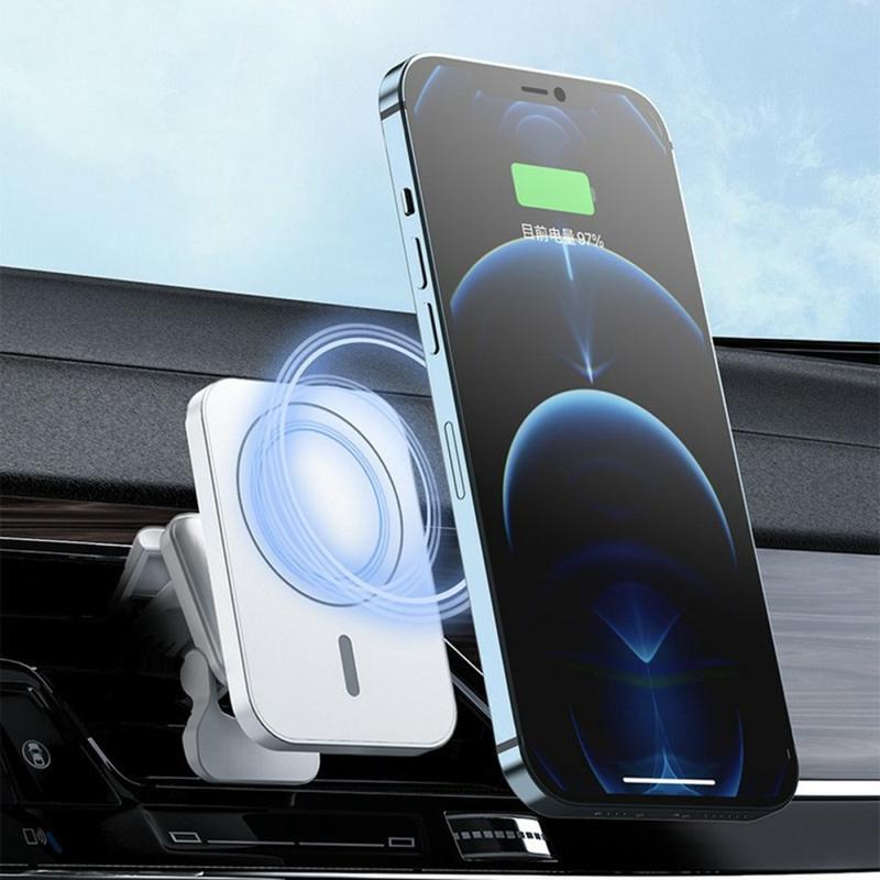 JJT-987 : chargeur sans fil magnétique de 15W compatible MagSafe avec support pour voiture et pince pour grille d'aération