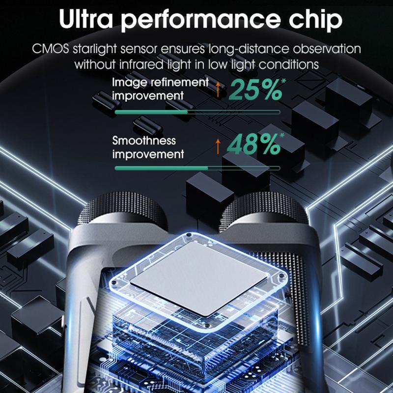 Explorez la nature de jour comme de nuit avec les jumelles de vision nocturne infrarouge R12, conçues pour fournir des images nettes et lumineuses même dans l'obscurité totale. Dotées d'une ouverture F1.2 ultra-large et de composants optiques de qualité militaire, ces jumelles capturent des photos et des vidéos haute définition d'une clarté exceptionnelle. Le capteur CMOS avancé de lumière stellaire permet l'observation à longue distance dans des environnements à faible luminosité, même sans activer la lumière infrarouge. Avec 7 niveaux de réglage de l'infrarouge et un puissant projecteur de 850 nm, vous pouvez observer clairement des sujets jusqu'à 300 m de distance dans l'obscurité la plus totale. Toutes les images capturées peuvent être exportées vers un ordinateur à l'aide du câble de données fourni. Cet appareil est donc parfait pour l'observation de la faune et de la flore, la surveillance, le camping, la randonnée et l'exploration nocturne.