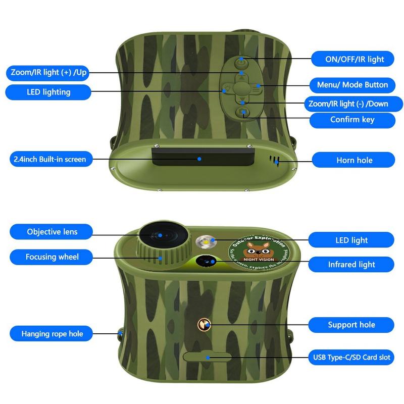 Jumelles de vision nocturne DT15 2.5K avec caméra pour enfants - Photos 48MP, zoom numérique 8x + optique 4x, écran IPS 2.4", IR 850 nm (7 niveaux), USB-C, batterie 2200mAh
