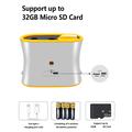 Le DT15 est alimenté par 4 × piles AA ou une charge de type C, ce qui le rend pratique pour les voyages et l'utilisation en extérieur. Grâce à son design léger et à la lanière incluse, les enfants peuvent le transporter en toute sécurité et confortablement. Le stockage est extensible avec une carte microSD de 32 Go (non incluse).