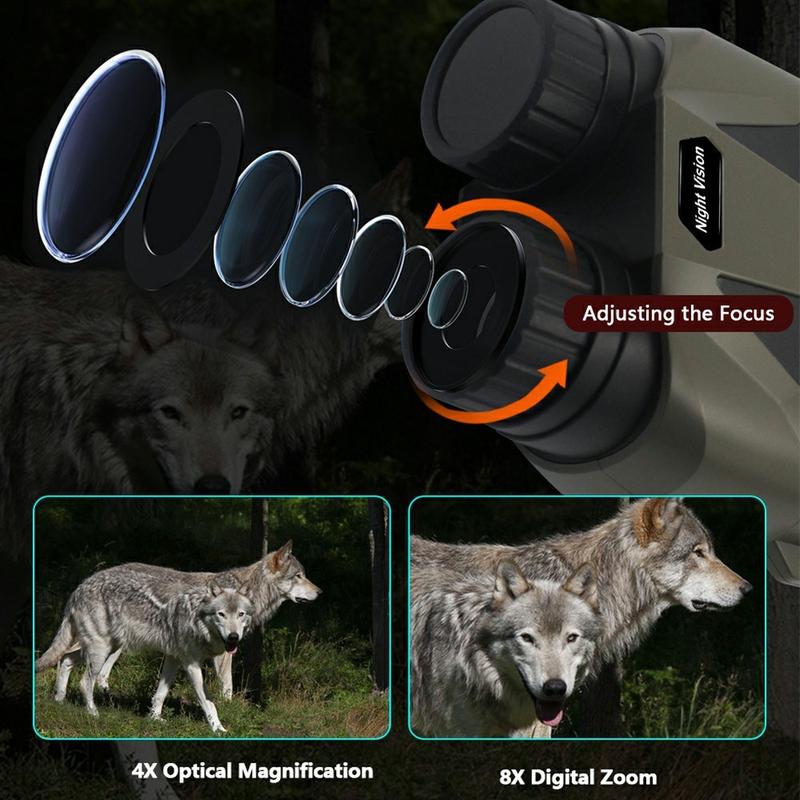 • Jumelles numériques à vision nocturne DT79 - Zoom optique 4X + 8X numérique, photos 48MP, vidéo 4K QHD, écran IPS 3", portée 300 m