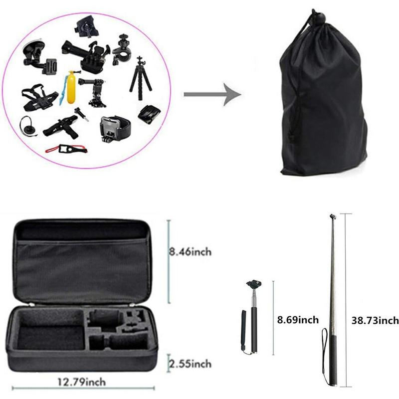 • Kit d'accessoires pour caméra d'action 71 en 1 - Sangle pour poitrine/tête, perche à selfie, trépied, poignée flottante et ensemble de fixations pour GoPro, DJI, Insta360, AKASO