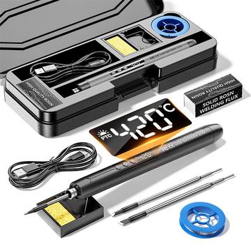 Kit de fer à souder USB-C sans fil et portable - Stylo à souder numérique rechargeable de 1 000 mAh avec 3 embouts et réglage de la température