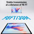 Le système utilise une connexion WiFi 5 GHz pour des performances plus stables et moins d'interférences par rapport aux environnements 2,4 GHz encombrés. Avec une portée sans fil pratique allant jusqu'à 30 m (en fonction de la ligne de vue et de l'environnement), vous pouvez placer votre téléviseur ou votre projecteur à l'endroit qui vous convient le mieux, sans avoir à tirer de longs câbles HDMI à travers la pièce.