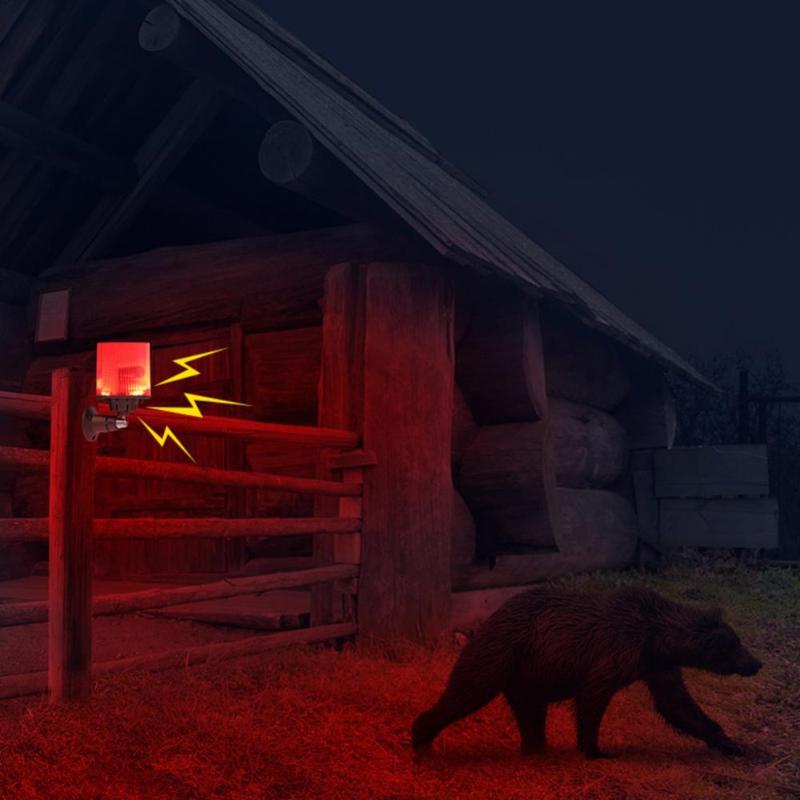 - Des études montrent que la combinaison de lumières clignotantes et de sons irréguliers augmente le succès de la dissuasion des animaux sauvages jusqu'à 70 % par rapport aux dispositifs à méthode unique.