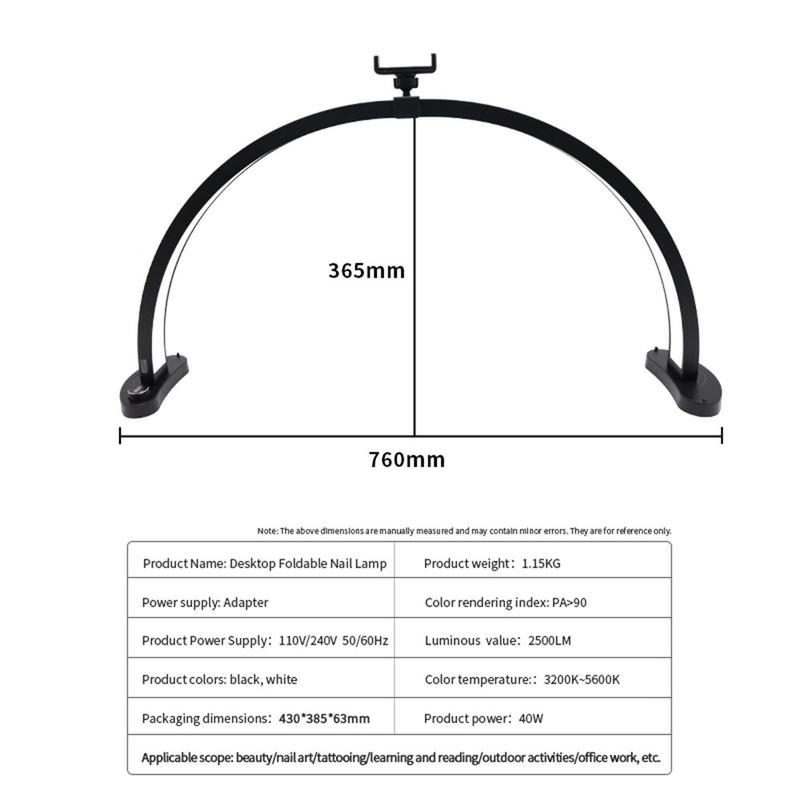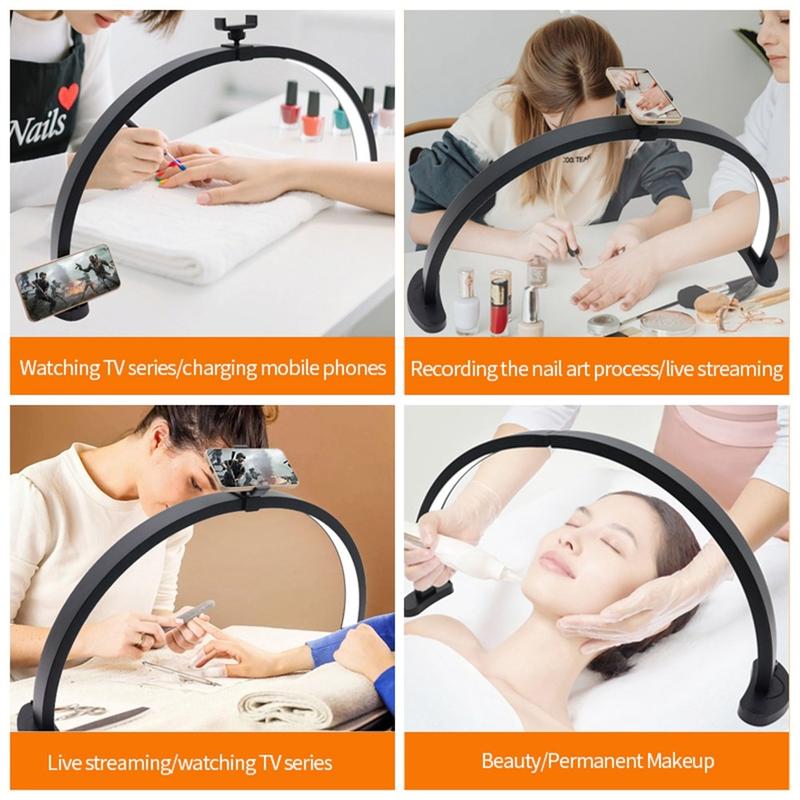 Créez une lumière nette et flatteuse pour les travaux de précision avec la lampe d'appoint LED sans ombre HD-M11X de 28 pouces en forme de U. Sa conception semi-circulaire permet de réduire les ombres dures. Sa conception semi-circulaire permet de réduire les ombres dures, ce qui la rend idéale pour les soins de beauté, l'onglerie, le tatouage, la création de contenu et les tâches de bureau minutieuses. Avec 280 LED bicolores, vous pouvez passer des tons chauds aux tons froids et régler l'ambiance de 3200K à 5600K. L'IRC élevé (>90) permet d'obtenir des couleurs naturelles et précises, ce qui est particulièrement utile pour assortir les tons de maquillage, choisir les couleurs des ongles ou travailler sur les teintes de peau. La lampe offre une luminosité de 2 500 lm pour une puissance de 40 W et comprend des supports de bureau ainsi qu'un ensemble d'accessoires de support de téléphone pour une installation ordonnée du poste de travail.