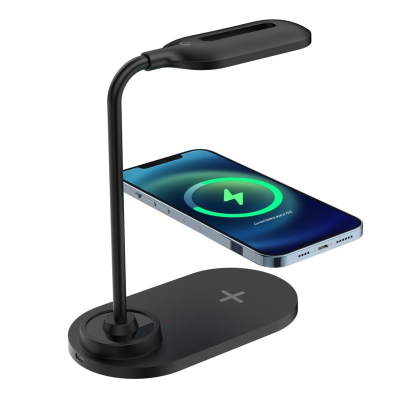 - Conception 2-en-1 combinant une lampe de bureau LED et un chargeur sans fil