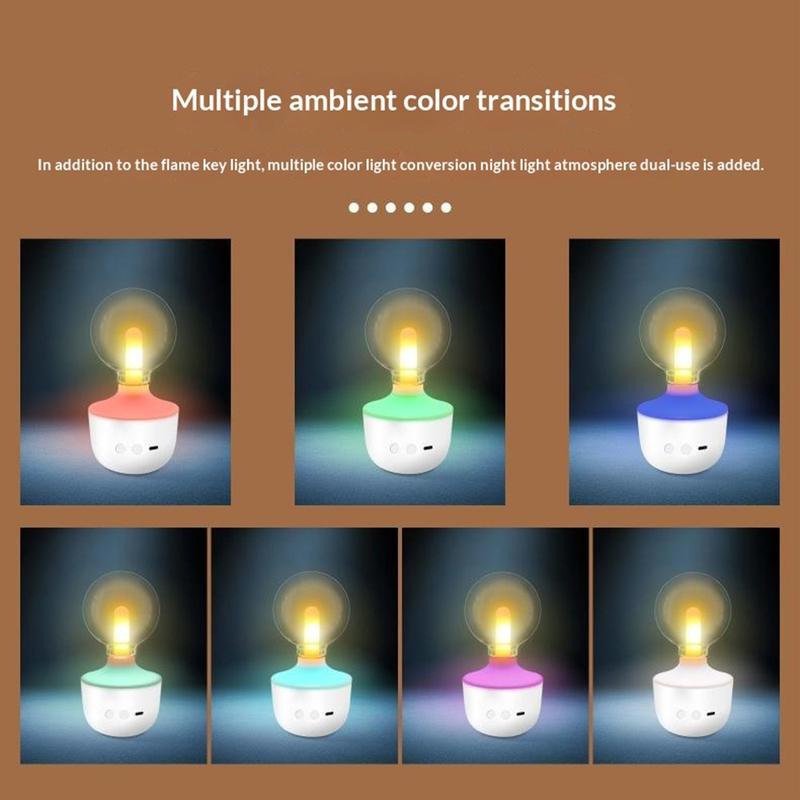 La lampe à effet flamme G80 combine une ambiance réaliste, une portabilité rechargeable et des modes d'éclairage colorés dans un design moderne, ce qui en fait une veilleuse décorative parfaite pour les chambres à coucher, les bureaux et les intérieurs confortables.